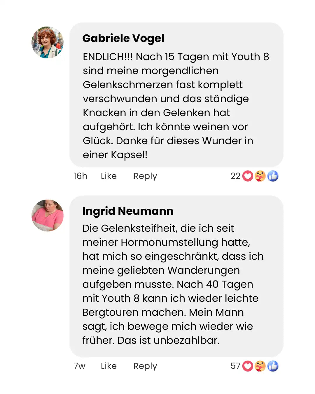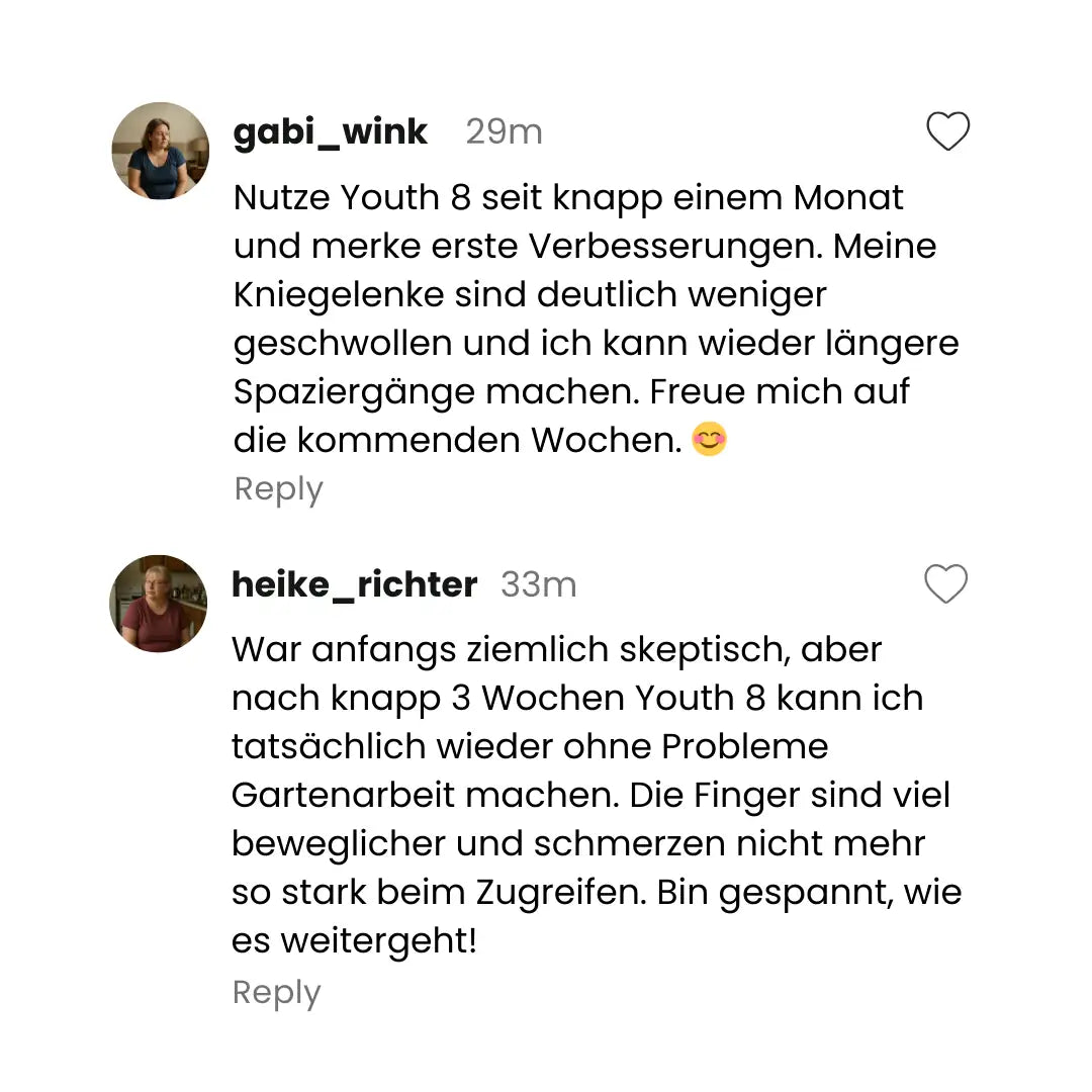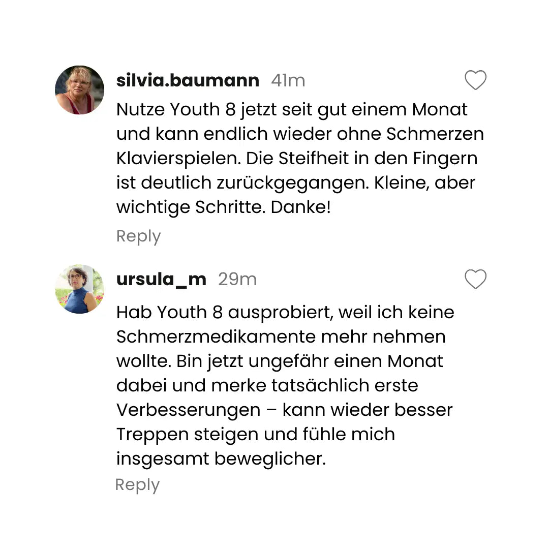 „Igen – lehetséges újra fájdalom nélkül mozogni és élvezni a kedvenc tevékenységeinket. Bármely életkorban. A Youth 8-nak köszönhetően nők ezrei fedezik fel újra, mit jelent mozgékonynak és aktívnak lenni.”