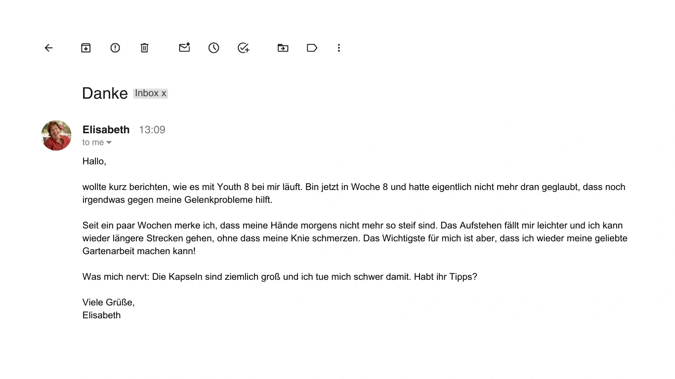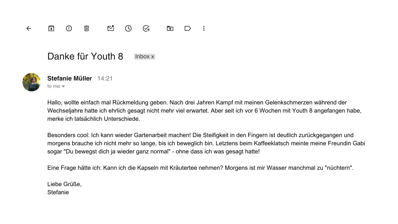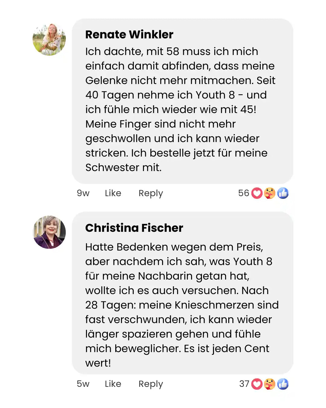 „Igen – lehetséges újra fájdalom nélkül mozogni és élvezni a kedvenc tevékenységeinket. Bármely életkorban. A Youth 8-nak köszönhetően nők ezrei fedezik fel újra, mit jelent mozgékonynak és aktívnak lenni.”