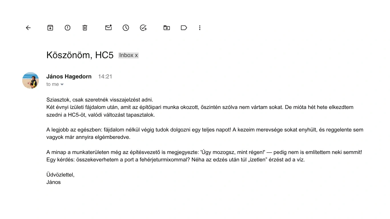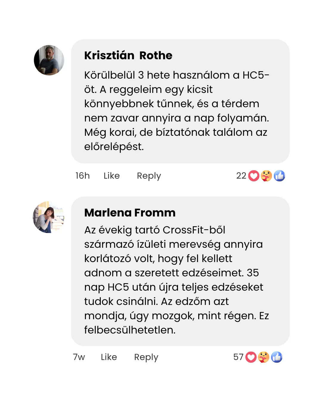 "Igen – lehetséges újra fájdalommentesen mozogni és élvezni azokat a tevékenységeket, amiket szeretsz. Bármely életkorban. A HC5-nek köszönhetően emberek ezrei fedezik fel újra, mit jelent mobilisnak és aktív lenni."