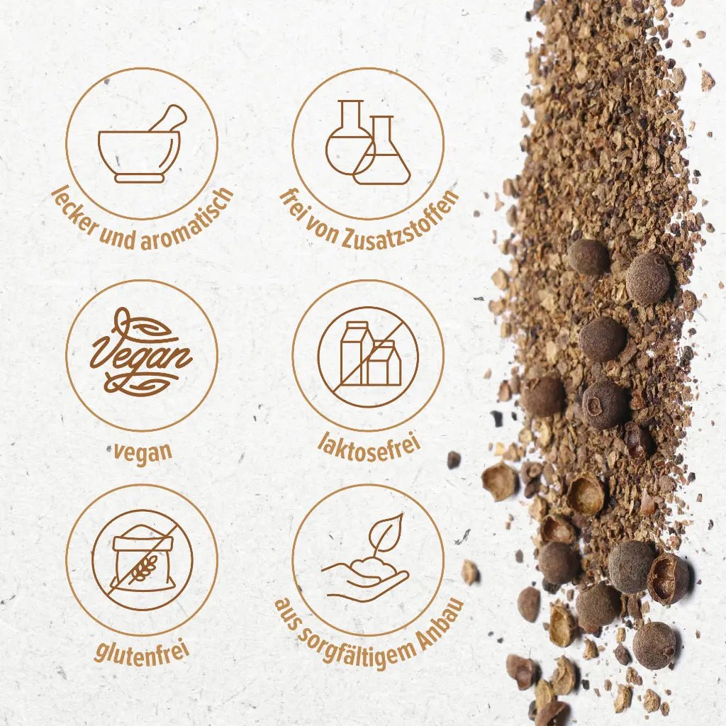 • 100% čisté a prírodné: Vyrobené z vysoko kvalitného, ​​jemne mletého nového korenia, bez prísad.