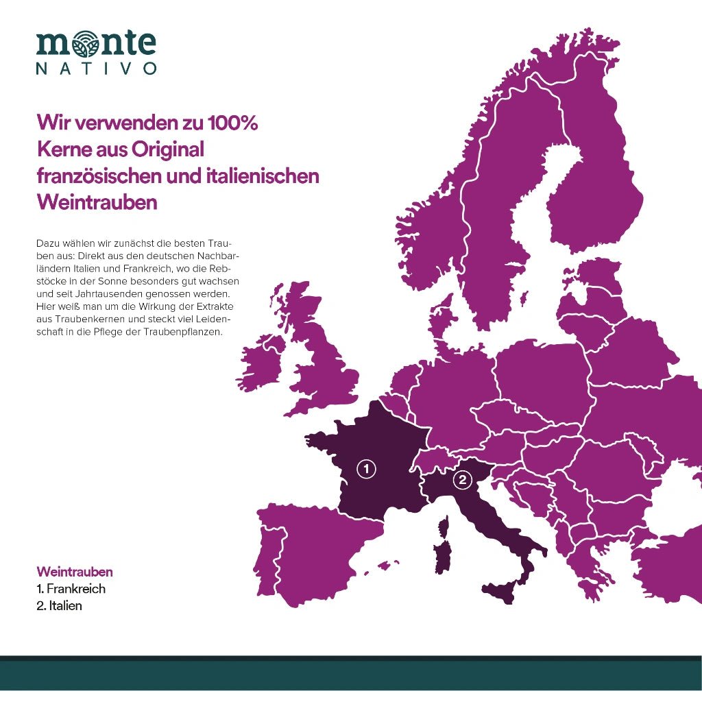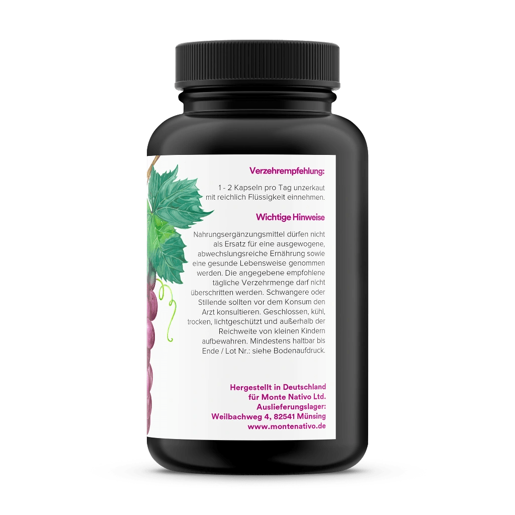 Für Monte Nativo steht Qualität an erster Stelle: Wir setzen auf sorgfältig ausgewählte Rohstoffe und schonende Verarbeitung, um die natürlichen Eigenschaften des Traubenkernextrakts bestmöglich zu bewahren. Durch die Kombination hochwertiger Zutaten mit modernen Produktionsverfahren entsteht ein Premiumprodukt, das Natürlichkeit und Qualität vereint. Monte Nativo steht für Transparenz, Vertrauen und eine verantwortungsbewusste Auswahl natürlicher Inhaltsstoffe.