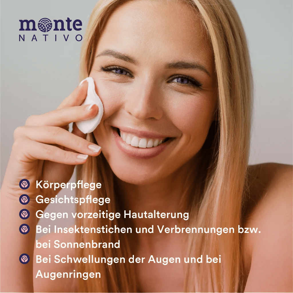 Monte Nativo Rosenwasser ist eine sanfte Pflege für Gesicht und Körper. Die natürliche Formel auf Basis von Rosenblütenwasser ist bekannt für ihre hautberuhigenden Eigenschaften und eignet sich ideal für alle Hauttypen – auch für empfindliche Haut.