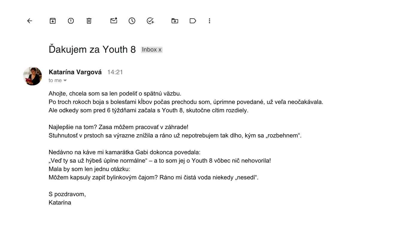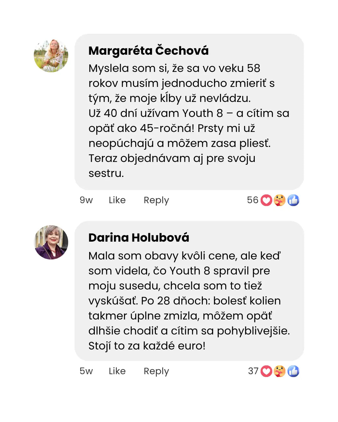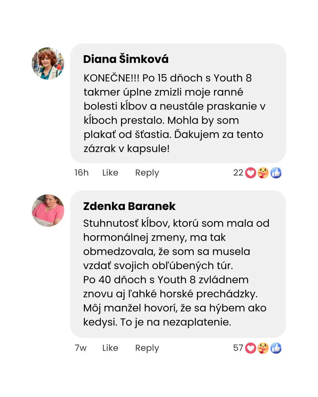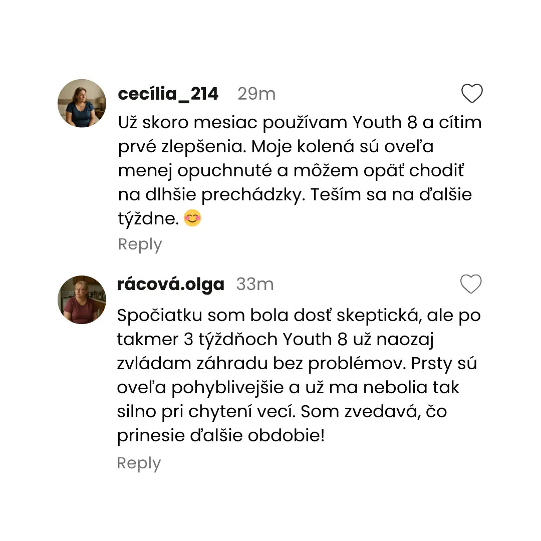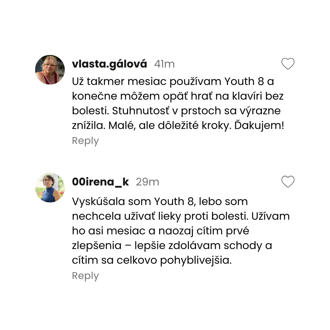 ''Áno — je to možné znovu sa pohybovať bez bolesti a užívať si aktivity, ktoré milujete. V každom veku. Vďaka Youth 8 znovu objavujú tisíce žien, aké to je byť aktívna a pohyblivá''